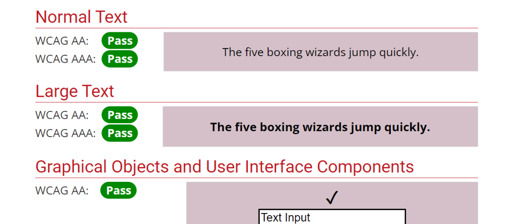 I use a contrast checker to ensure the colors I use meet accessibility standards. See the passing results of the colors displayed on my webpage on the right side of the page.